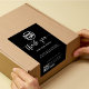 Customisez ces minimalistes noirs "Logo d'expédition QR Code Packaging Box Étiquettes" pour l'emballage d'entreprise, avec un logo de société blanche, le message "Merci pour votre commande" dans un magnifique script, votre message personnalisé, QR Code, et les poignées de médias sociaux (Instagram, Facebook). Les autocollants sont destinés à passer verticalement sur le couvercle de la boîte d'emballage. Veuillez contacter le concepteur du magasin pour plus de personnalisation si nécessaire.