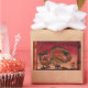 Contre un ciel rougeâtre, un dragon à la peau ressemblant à un brocart en soie rouge et or pose entre deux piliers en bambou rouge. Dans un coin sont les caractères chinois pour "Bonne Année" ; dans un autre, le symbole zodiaque pour dragon. Cet autocollant apportera sûrement de la chance au propriétaire de tout ce à quoi il est attaché, que ce soit spécifiquement l'année du dragon ou non.