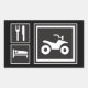 Des icônes de style "road sign" représentant les nécessités de base de la vie. Service de restauration et hébergement photos pour manger et dormir, avec un carré extra grand montrant un coureur sur un véhicule tout terrain à quatre roues, ou "Quad" comme son communément connu. Pour tous les amateurs de moto-cross et les boueuses de route. Le design cool noir blanc et gris convient aux styles masculin, féminin et enfant dans toutes les couleurs, ainsi que sur divers cadeaux.