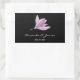 Autocollants personnalisés avec une belle couleur de fleur de magnolia violet et votre texte pour toute occasion en lettrage blanc chic sur un arrière - plan noir, parfait pour les faveurs de mariage, douche nuptiale, phoques faire-part de mariage et plus encore. OBJETS CORRESPONDANTS dans notre magasin.