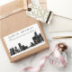 Style vintage mariage de célébration faveur autocollant design comprend une image gravée unique de l'horizon de la ville de Detroit dans le centre-ville pris le soir le long du bord de la rivière, combiné avec la typographie vintage Art déco, et un schéma classique en noir et blanc. Forme d'autocollant rectangulaire au format paysage, parfait pour les cadeaux de faveur et les boîtes/sacs d'accueil hors-ville.
