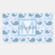 Sticker Rectangulaire Monogramme Motif de baleines bleues mignonnes