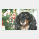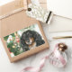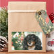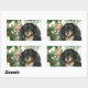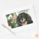 Dachshund miniature noire sur un vintage look Noël arrière - plan vacances rectangulaire autocollant photo