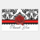 Sticker élégant et classe Art Nouveau damask "Merci" avec une bande rouge par Bulgan Lumini (c) .Facile à customiser avec vos initiales et votre propre texte comme faire-part, sauver la date, douches nuptiales, douches douces 16 anniversaire, anniversaire, douches fiançailles, ou à peu près tout événement que vous souhaitez!