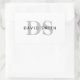 Sticker Rectangulaire Nom et monogramme modernes | Blanc noir et gris