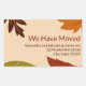 Des feuilles d'automne orange, brune, rouge foncé et verte sont sur cet autocollant de faire-part mobile. We Have Moved a dépassé trois lignes de texte brun foncé. Vous pouvez modifier le texte pour afficher le ou les nom(s) correct(s) et votre nouvelle adresse.