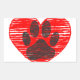 Sticker Rectangulaire Paw Chien Croquis Dans Le Coeur Rouge