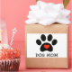 Ce design présente un empreinte de patte noir avec un coeur à l'intérieur, ainsi que le texte DOG MOM.