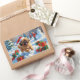 Sticker Rectangulaire Pekingese Chien courant dans la neige avec le Casq
