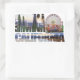 Sticker Rectangulaire Père Noël Monica logo fleurs jetée plage
