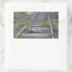 Sticker Rectangulaire Petit Oiseau unique sur les voies ferrées, Merci