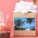 Sticker Rectangulaire Plage de sable avec palmiers et vue sur l'océan