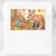 Sticker Rectangulaire Renard et furet en feuilles d'automne
