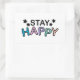 Les mots "Restez heureux" avec des lettres multicolores et des étoiles mignonnes - de bonnes vibrations et du plaisir!