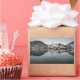 Photosticker rectangulaire d'une scène d'hiver avec le reflet de la tour de l'église jaune dans l'eau calme du lac Tegernsee et avec la neige sur les toits des maisons de la ville Rottach-Egern avec les Alpes montagnes dans l'arrière - plan en Bavière (Bayern), Allemagne.