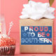 Texte qui dit "Fière d'être au sud" en rouge patriotique, blanc et bleu sur une diagonale à travers les mots. Deux étoiles sont de chaque côté des mots. Ce produit intéresserait quiconque est fier d'être du Sud aux États-Unis.