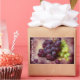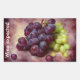Grappes de raisins rouges et verts. Des gouttes d'eau sur les baies. Photographie texturée, couleurs vert et violet. Imprime et cadeaux pour le plaisir et la bonne humeur. Sticker rectangulaire. Vous pouvez modifier ou supprimer le texte Vin attendu.
