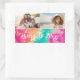 Sticker Rectangulaire Salutations au Nouvel An Cravate-Dye Photo Turquoi