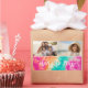 Conception de vacances et de nouvel an non conventionnelle avec une ambiance les années 70. FRONT - 2 Collage photo avec une zone centrale pour le type et un accent cravate-teint. "Cheers to the Nouvel An" est dans une police moderne qui coordonne avec l'arrière - plan non traditionnel. Ajoutez votre salutation à ce design éclectique et coloré.