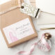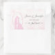 Un bel ensemble de motifs mariages romantiques d'autocollants rectangle montrant les silhouettes baisantes encadrées de la mariée et du marié contre un arrière - plan rose onirique, avec date personnalisable, noms et mots "enregistrer la date" sur le côté.