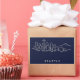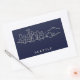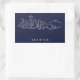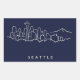 Ce dessin présente une esquisse dessinée à la main de l'horizon de Seattle sur un arrière - plan bleu foncé.