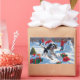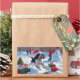 Une joyeuse Springer Spaniel court joyeusement à travers la scène hivernale enneigée, portant un casquette de Noël rouge festif. Ce design animé met en valeur les longues oreilles de la race, la construction sportive et la nature affectueuse tout en capturant la chaleur et la joie de la saison des fêtes. Un moment d'hiver plein de charme festif et chaleureux.