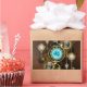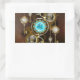 Turquoise lenses with antique watch with brass gears and golden keys on rusty, brown background. Steampunk style.