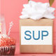 Le logo comporte les lettres "SUP" qui est une abréviation du tableau de bord debout. La planche à voile stand-up combine des éléments de surf et de pagaie.