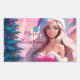 Belle illustration d'une belle fille en robe rose et casquette du Père Noël avec boîte cadeau près du sapin de Noël. Choisissez cette adorable fille dans les suites père Noël entourée de l'atmosphère magique de Christimas pour célébrer vos vacances avec joie et une touche de magie. Parfait également pour les cartes de voeux.