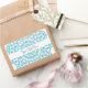 Autocollant très élégant et élégant en bleu turquoise et blanc avec un joli dessin en faux dentelle et si facile à ajouter du texte de votre choix. Idéal pour les projets de mariage et de fête d'anniversaire comme la décoration des tables et les faveurs.