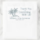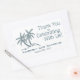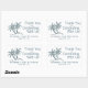 Cet autocollants de remerciement de mariage simple mais élégant comporte deux palmiers bleus avec les prénoms de la Mariée et de la Salle et la date mariage en dessous. Sur le côté des arbres se trouvent les mots "merci de célébrer avec nous". Cela pourrait être utilisé pour les faveurs de mariage et/ou les étiquettes de cadeaux de remerciement. Parfait pour les mariages tropicaux, balnéaires, océaniques ou de plage.