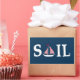 Sail text illustration with sailing boat decoration on dark blue background. C'est possible to change the background color and to add different one to the design with your choice.
