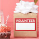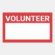 Red Blank Volunteer Name Balise avec titre en blanc gras sans serif police avec espace blanc pour votre nom sur arrière - plan rouge. Parfait pour les stagiaires, l'équipage, le personnel, le groupe, l'équipe et plus.