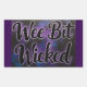 Cet autocollant présente une écriture audacieuse et élégante sur un arrière - plan sombre et fumé aux teintes violettes et bleues, évoquant une atmosphère mystérieuse et ludique. Fini comme une peinture à l'huile.