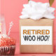 Retraité ! Ouh ! Drôle à dire sur t-shirts, autocollants, tasses et plus encore. Design original.