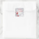 Cet autocollant "Joyeux Noël", rouge, gris argenté et blanc carré de 1,5 po, peu coûteux et festif, est orné d'un cerf mâle aux bois ornés de saints et de baies, d'un cadeau rouge avec des rubans, des flocons de neige, des étoiles et une variété d'arbres de Noël sur un arrière - plan gris brumeux avec une bordure enneigée.