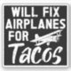 Will Fix Airplanes For Tacos - Cette conception mécanique d'avion pour hommes est également idéal pour votre collègue ou ami qui est un passionné d'aviation et de réparer les avions.