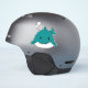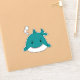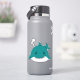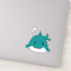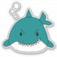 Caricature requin bleu et blanc avec une rangée de dents pointues faisant un sourire effrayant en soufflant trois bulles qui flottent.