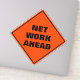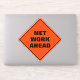 Drôle classique orange losange avertissement panneau de route avertit de travail net devant dans une police noire sans serif épaisse, qui est un signal d'avertissement pour le panneau de travail routier qui sera à venir prochaine.
