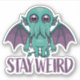 Image de dessin vectorielle du mignon monstre Cthulhu bébé avec de grands yeux avec le texte Stay Weird. Tags : cthulhu, poulpe, monstre, lovecraft, chibi, calmar, mer, océan, animal, créature