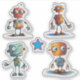 Ensemble de 4 autocollants vinyle, des modèles de robots décalés # 1 - 4. Parfait pour les faveurs de la fête, les farces de bas, les prix de classe ou le scrapbooking. Peut être coupé en 4 autocollants individuels, selon vos besoins.