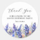 Des fleurs élégantes de larkspur bleu créent un joli autocollant de remerciement. Larkspur ou delphinium fleurs sauvages sont la Fleur de naissance de juillet, c'est donc un design floral parfait pour un anniversaire de juillet. Un script ouvert et aéré vous remercie. Deux lignes de texte vous permettent de personnaliser une déclaration de remerciement et votre nom. Tout le texte est modifiable.