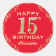 Sticker Rond 15e anniversaire Parties scintillant rouge et or c