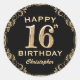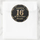 Sticker Rond 16e anniversaire de la Parties scintillant Noir et