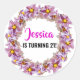 Tourner 21 autocollant rond rose et lilas. stickers fête du 21e anniversaire. "Jessica est Turning 21" est entièrement personnalisable. Vous pouvez modifier le nom et l'âge. Choisissez les couleurs et les polices que vous souhaitez dans le menu d'édition. Utilisez sur vos invitations de fête pour personnaliser complètement la fête avec ce thème tropical. .
