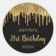 stickers de parties scintillant moderne chic happy anniversaire noir or multi gouttant. vous pouvez changer la couleur et la police arrière - plan.