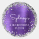 Ces élégants stickers de 21ème anniversaire (ou toute année) présentent un arrière - plan en métal brossé violet avec une bordure en parties scintillant argent glam. Personnalisez-les avec le nom de l'invitée d'honneur en écriture manuscrite blanche, ainsi que son anniversaire et sa date en caractère sans serif.