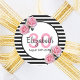 Un autocollant pour une fête du 30e anniversaire. Classic rayures noir et blanc mince comme arrière - plan. Avec des roses roses roses roses girly et féminine comme décoration. Un cadre sur le devant avec modèle pour l'âge, le nom et la date. Numéro d'âge en rose, nom et date en noir. Le nom est écrit avec un script de style écrit à la main.