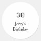 Sticker Rond 30th birthday bold letter name date simple minimal