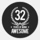 Sticker Rond 32e anniversaire (32 ans d'être génial)